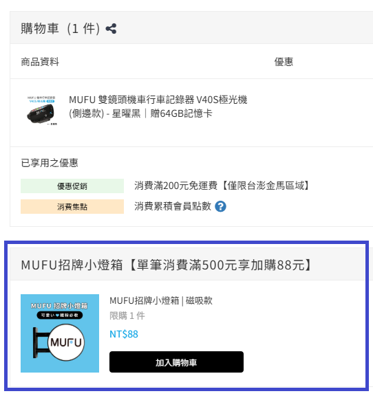 結帳即可享加購價88元(原價200元)*單筆限加購1個