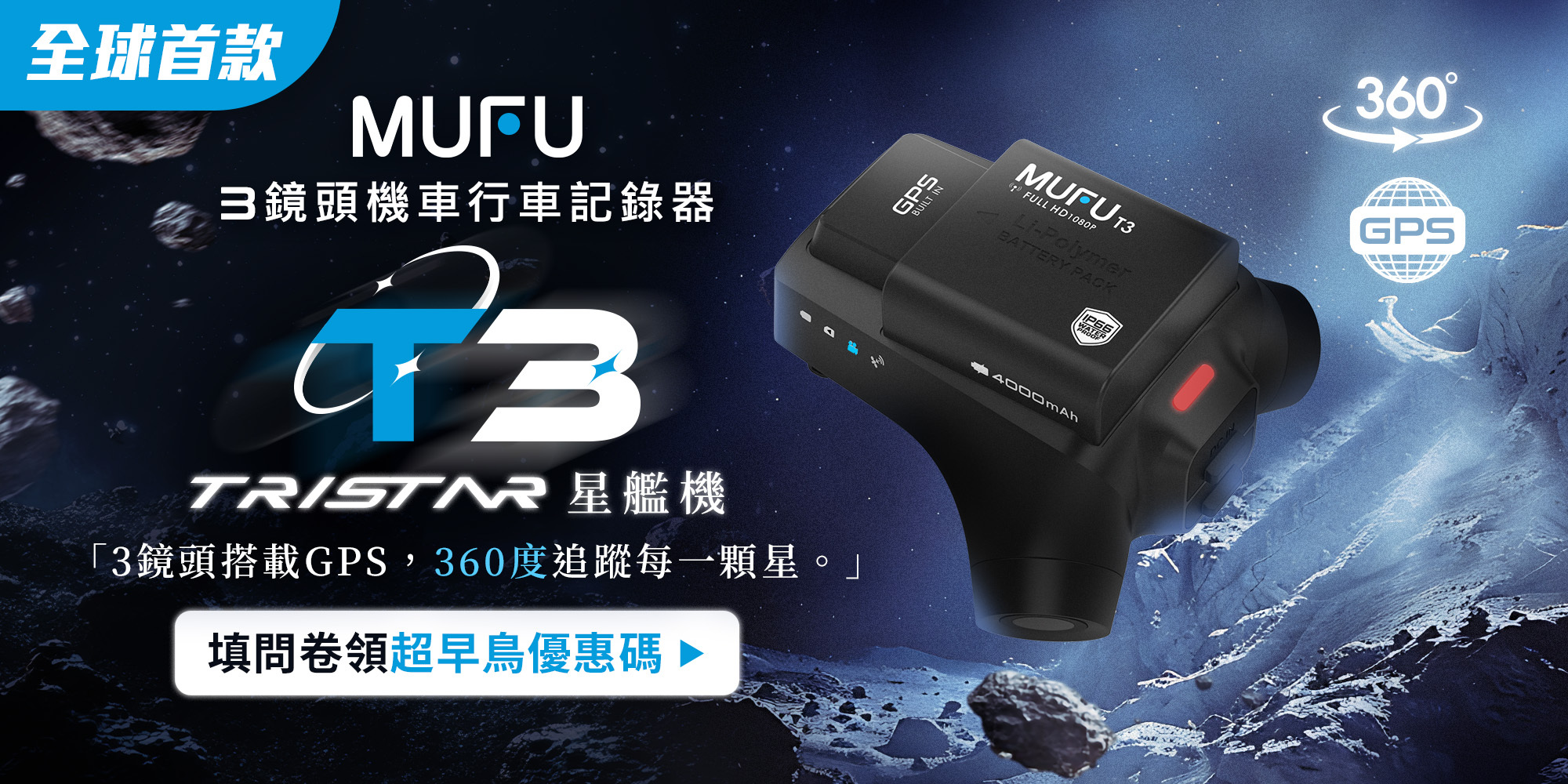 #MUFU #T3星艦機 #3鏡頭行車記錄器 #機車族必備 #360度守護 #台灣原創設計