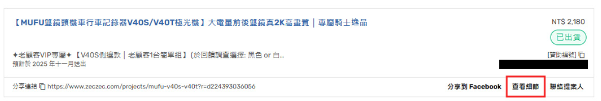 如是已出貨狀態可到嘖嘖平台登入系統查看"贊助記錄"狀態會是"已出貨"狀態,可點選"查看細節"會顯示物流追蹤碼可查詢。如選擇超商取貨還請留意簡訊通知取件📲