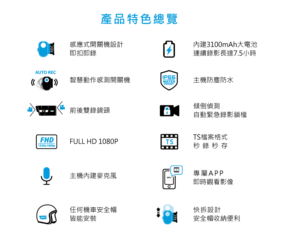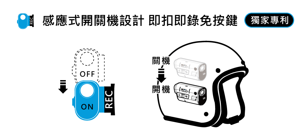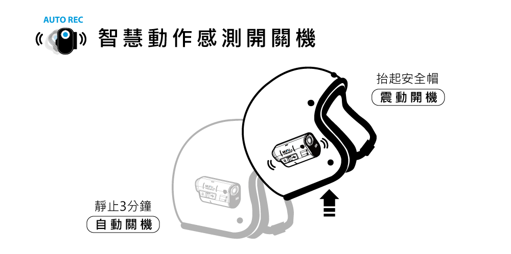 ◉V20S感測到安全帽被車主拿起戴在頭上,將自動開機進行錄影,避免車主忘記開機而沒有錄到影像的窘境