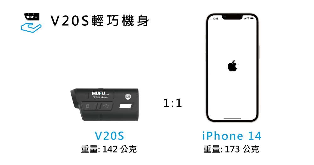 V20S外型輕巧重量僅142公克,比一支I Phone 14手機還小