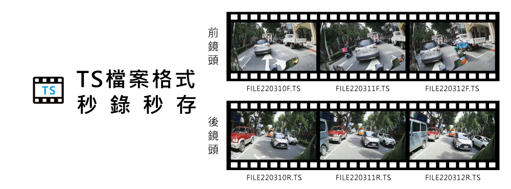 內建循環錄影功能,當記憶卡容量錄滿時,自動將舊的檔案覆蓋循環錄影,省去記憶卡錄滿需更換的不便利性