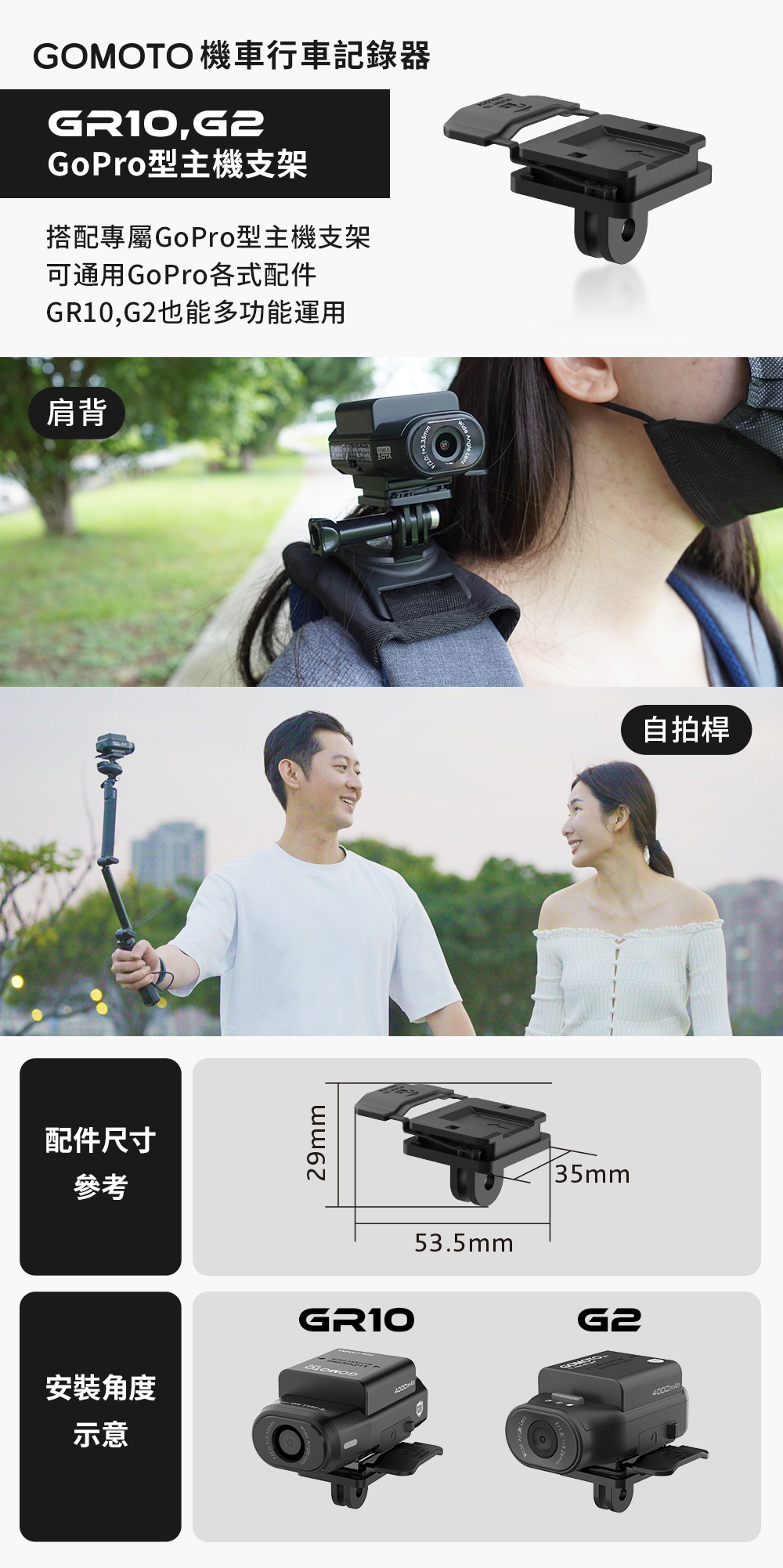 GOMOTO GR10,G2機車行車記錄器配件,GoPro型主機支架組,可加購搭配各式GoPro支架,GR10,G2也能多功能運用。
