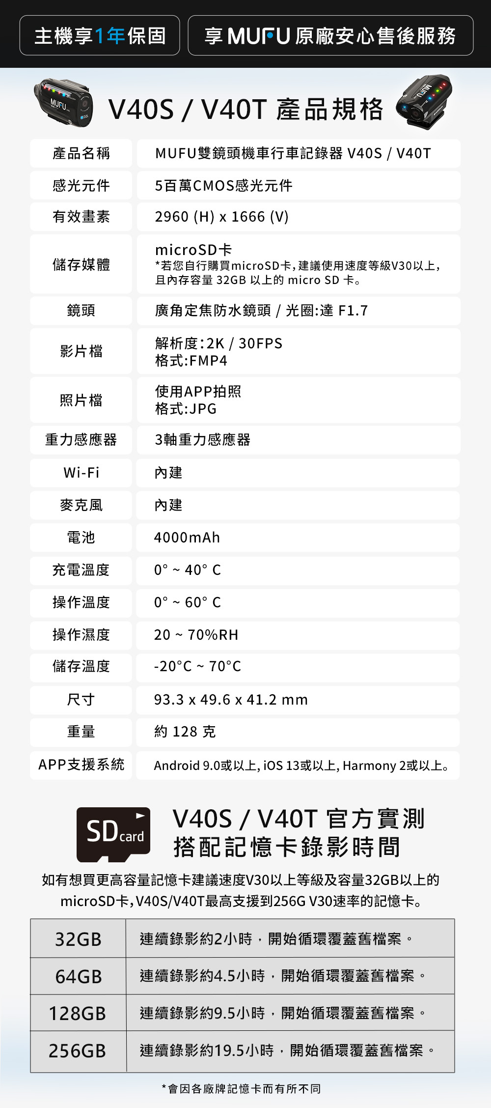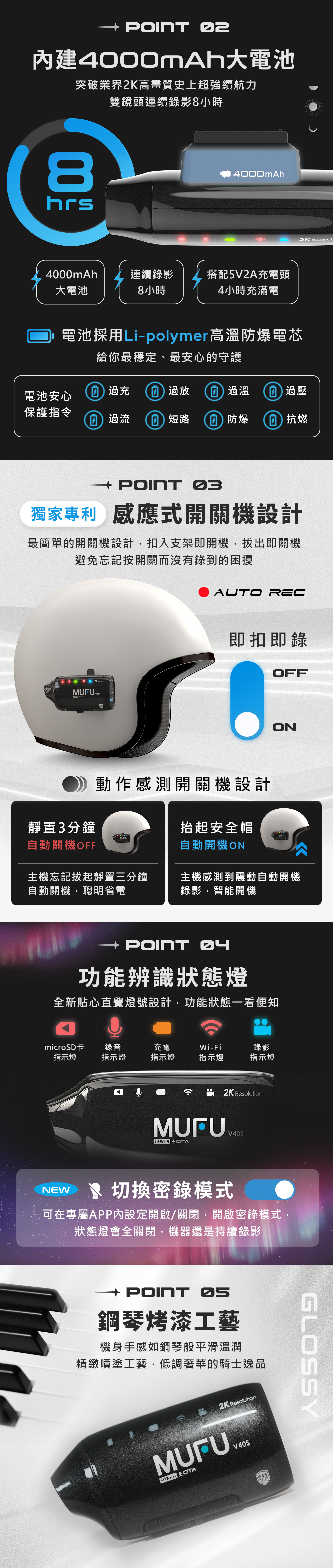 .4000mAh大電量連續錄影長達8小時