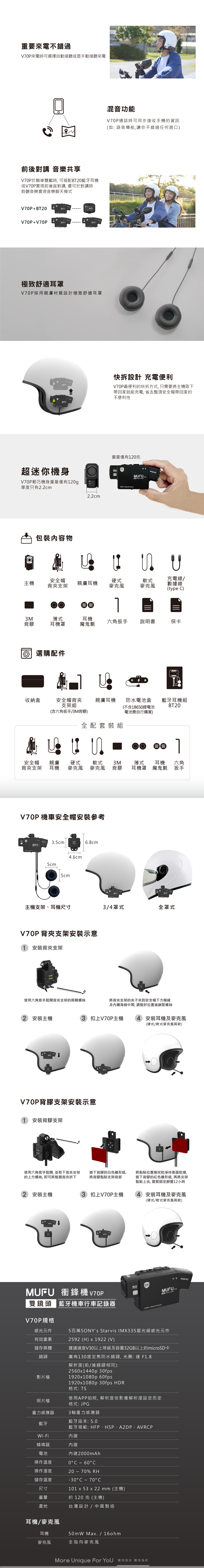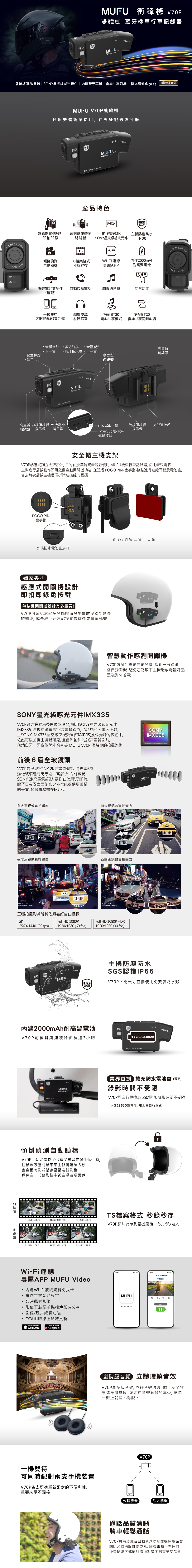 .內建2000mAh電池前後雙鏡連續錄影長達3.5小時