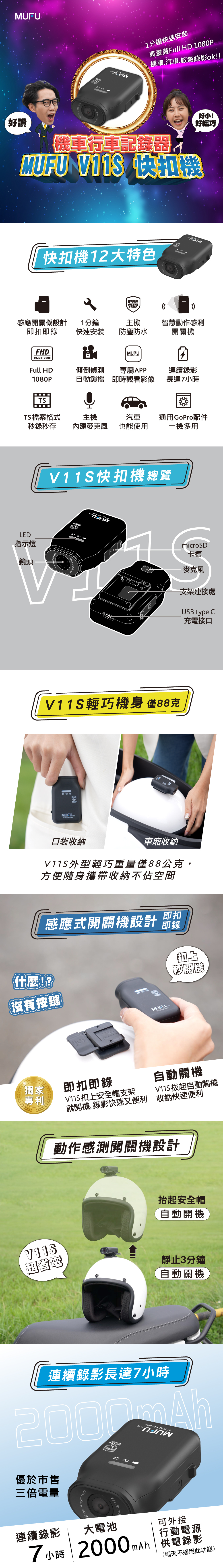 .大電池2000mAh單鏡頭連續錄影7小時
