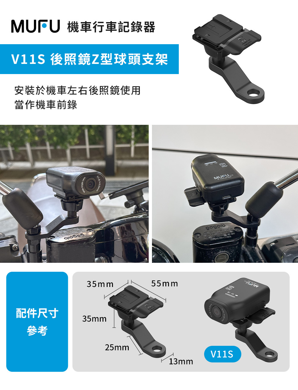MUFU V11S,V11S機車行車記錄器配件,V11S後照鏡支架組(球頭), 安裝於機車左右後照鏡使用 當作機車前錄。