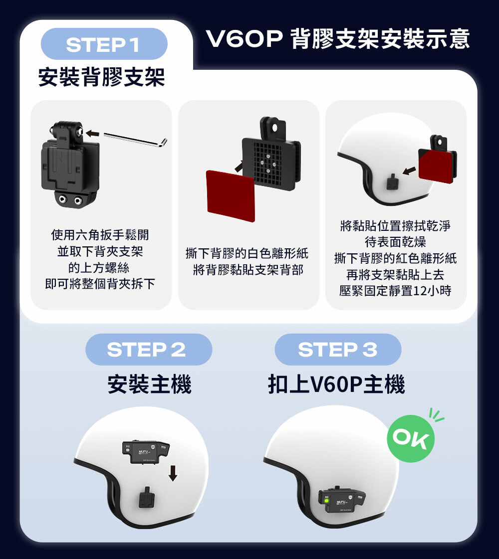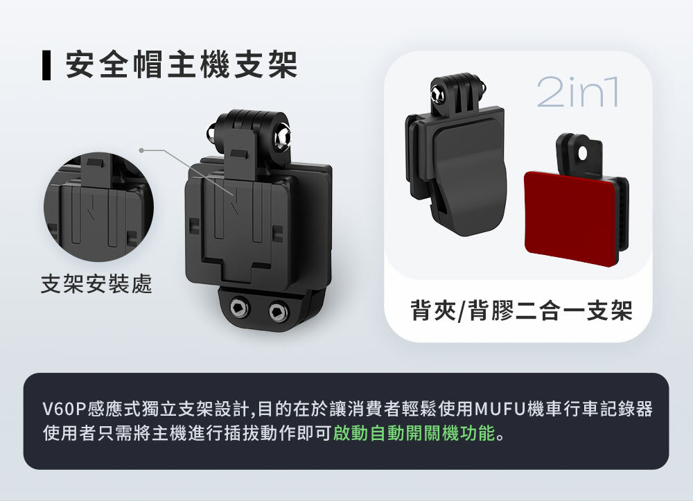 可多加購此支架安裝在不同安全帽使用