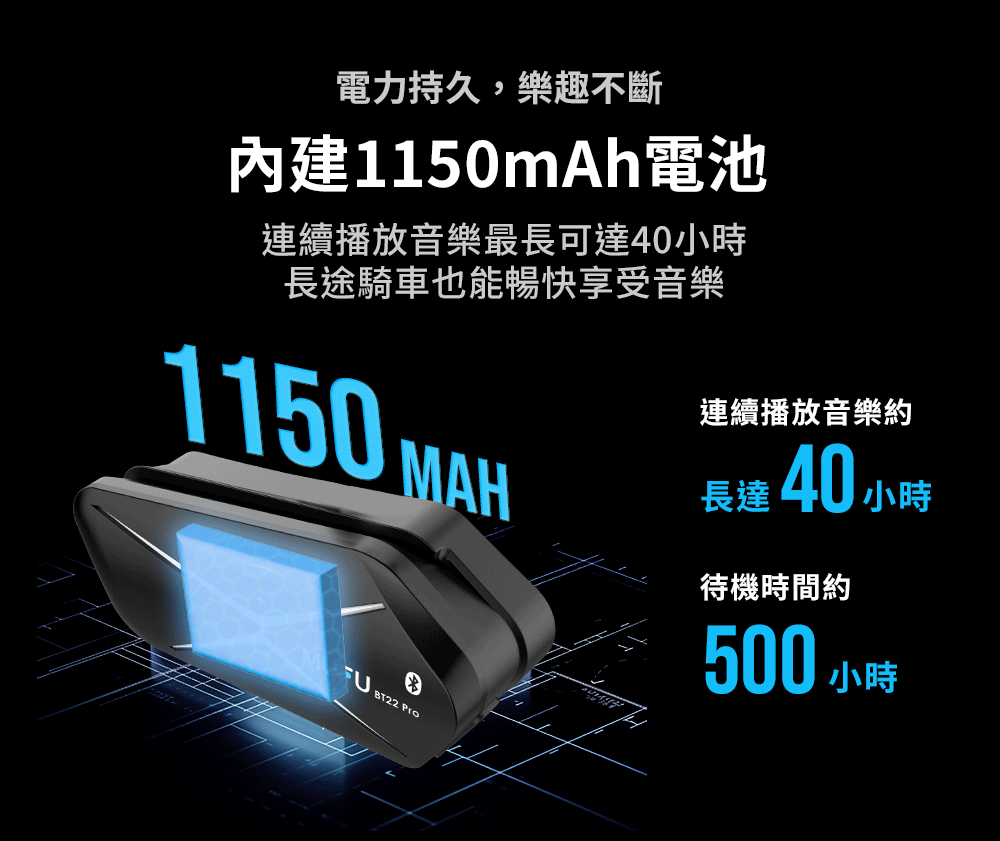 .內建1150mAh大電池,使用長達40小時